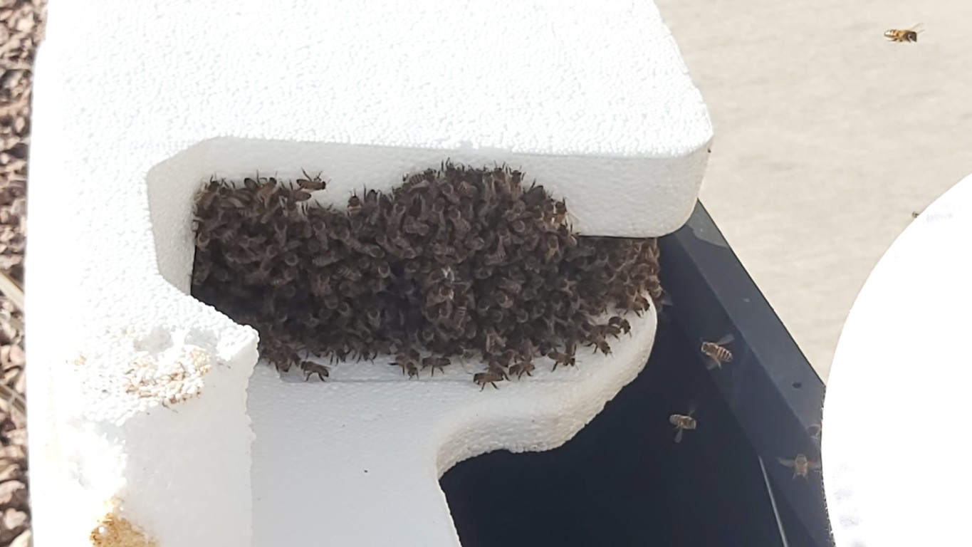 Feeding: Removing bees from their home can put stress on the colony, so feeding is generally necessary to support the bees while they establish in their new home. They need to learn their new environment, repair any comb that was damaged during removal from the old location, re-orient themselves and learn where to forage in their new area.