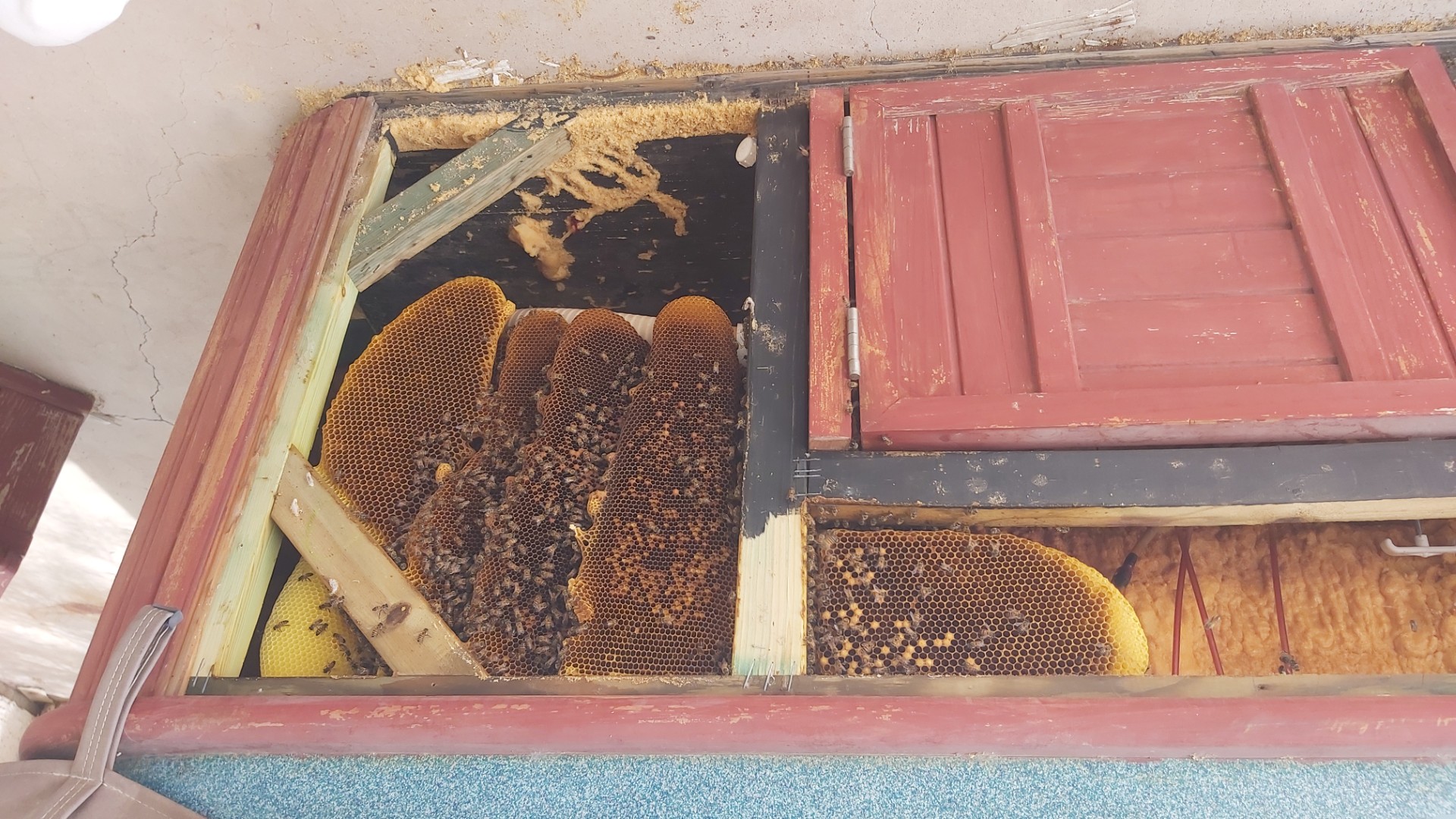 Structural removal requires a cut-out or opening of the structure, removal of the bees, removal of as much comb as possible (an important step to avoid may other problems in the future), cleaning and treating the area with a natural bee repellent, in most cases provide repair of the area and finally we perform an exclusion of the original point or points of entry so you will not have problems in that same space again. Please call to discuss your situation or text pictures.